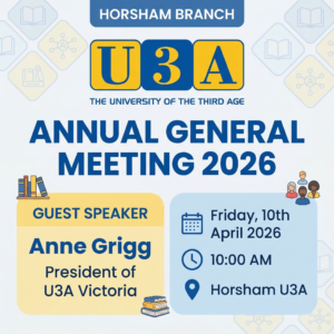 A big thank you to all Horsham U3A members who attended our Annual General Meeting this morning — both in person and online! We appreciate